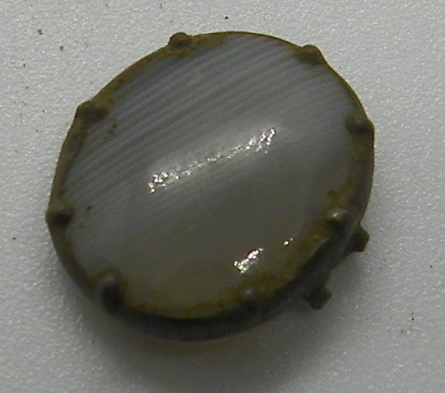 Age wise of this artefact & where this was found with other finds surrounding this i would say late Edwardian, it is well made & an expensive purchase when new, with the claws holding the stone in place like you would find on a ring… with the sprung clip on the reverse, which secures it to the ear being loose, which i reckon made it the earring drop off the wearers ear…