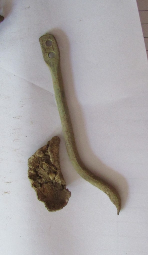 That blunt point has a purpose, many an old wives tale about boy scouts has been told about removing stones stuck in horses’ hooves, whether or not there is a grain of truth in there somewhere, i don’t know, but this find, with its two holes in one end [- could well have been a part of a spur, once upon a time -] has been re-purposed & is designed for a “new” particular purpose, its job was to remove stones and other objects from the frog of a horses hoof…