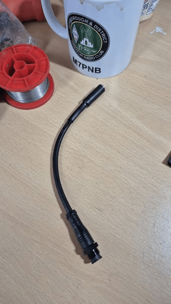 Cut all the wires off the M12 cable except red, white, and blue.
