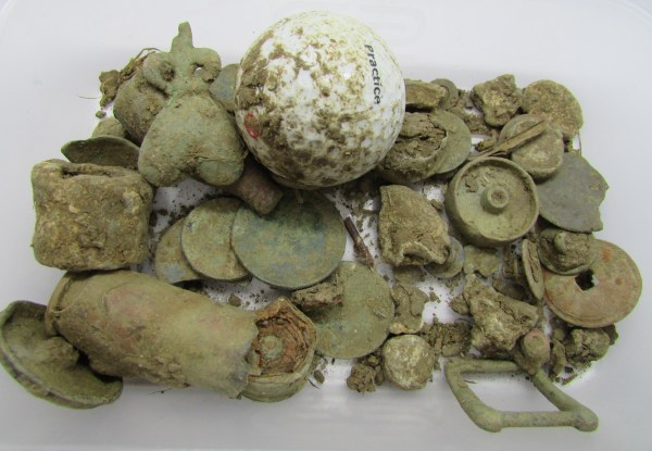 T2 - 85 - 5 - 2+ Despite everything, including the MDP i had a good few hours out in the late sunshine, although it was windy which bought in the cold... a battered thimble, pre-decimals, usual farm stuff, musket balls, lead and the obligatory gun cap, with a battered & untidy two piece brooch,... Continue Reading →
