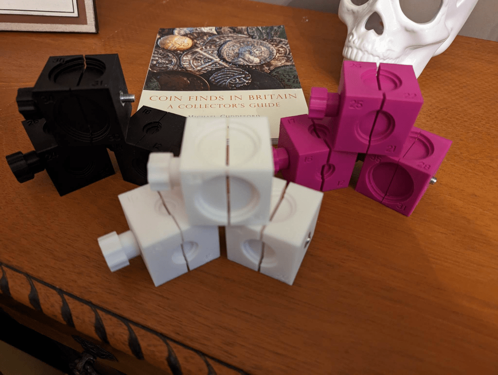 These 3D Printed Coin Blocks are printed out on a 3D Printer to hold assorted sizes of coins, the design of these clever little coin vices is not new but caught the eye of this ex-veteran looking to make his life easier whilst cleaning his own coins, so after the purchase of a 3D-Printer, the next step was to purchase the legal right to use & print out (- as a 3-D-File -) these useful Coin Vices…