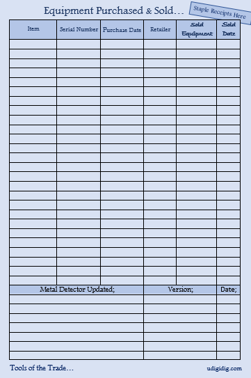 Remember this Artefact Journal & Field Diary, is the first stepping stone of keeping track of your finds, without the pressure of having to record other data like weight, composition, height, thickness etc… all of that can be done later, if you want too, most of us know brass from bronze, gold or silver, so should you wish too, the academically side of Artefacts can be done at a later date, no perfect identification needs to apply here, in this book, you can just record the artefact, with identification coming later…