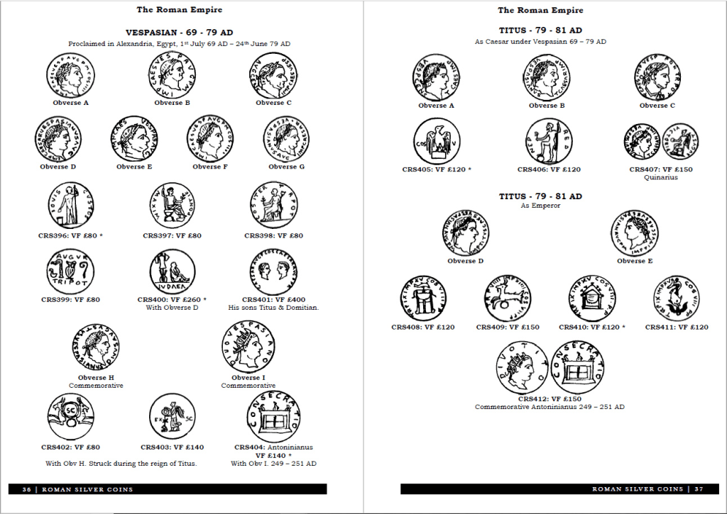 Shown below are both the Roman silver coin books, the new edition on the left, with the Colosseum, whilst on the right, with a blue front cover, is the older edition book. The reason for showing this is because both books are often sold side by side with very little difference in content, so go for the newer one where possible…