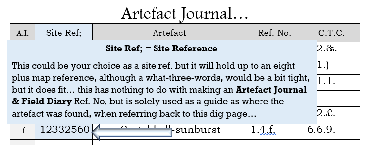The “Site Reference” is not a new addition to the book, but it is a new addition to the Artefact Journal Page, where each of the artefacts can be listed, with a personal ID… Click here to view the video – As explained by Stephen Aucker, in this tutorial, have the ref. no. sent via text, as a reminder to write down once you get home…